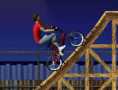 BMX Master ist ein Spiel, für alle die gerne mit dem Bike durch die Gegend düsen und dabei spekatuläre Sprünge zeigen wollen. Bei diesem Spiel trifft sich die Elite des BMX-Sports, um seinen Champion zu ermitteln. Bevor Du Dich mit den Besten der Welt messen kannst, musst Du warscheinlich etwas üben, aber das ist kein Problem, denn Du kannst am Anfang den Trainigsmodus auswählen und Deine Fähigkeiten rasch verbessern. Danach bist Du fit für das Turnier, bei dem Du Saltos, Arials und vieles mehr zeigen kannst. Achte darauf, nicht vom BMX zu fallen, denn dann sind alles Punkte, die Du Dir bislang erspielt hast, verloren. Die Steuerung des Spiels erfolgt mit den Pfeiltasten. Drücke die Pfeiltaste oben, um zu beschleunigen, mit der Pfeiltaste unten wird gebremst. Mit den Zahlen 1-8 kannst Du spezielle Tricks auswählen.